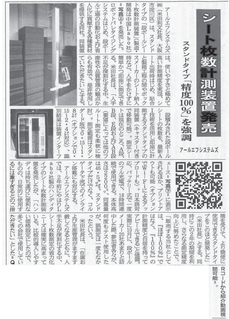 2024年11月27日 板紙・段ボール新聞に記載されました