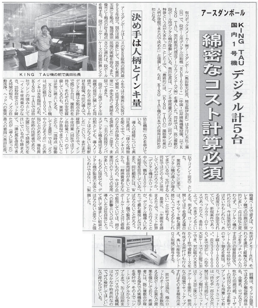 2024年11月27日 板紙・段ボール新聞に記載されました